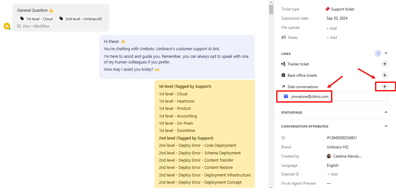 - Send this code to the customer’s email via Intercom’s side-conversation feature. This keeps communication organized within Intercom, making it easier than using your own work email.