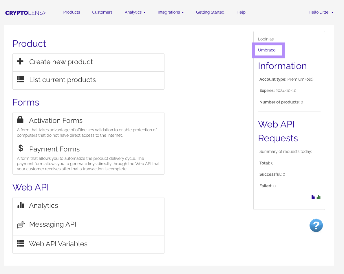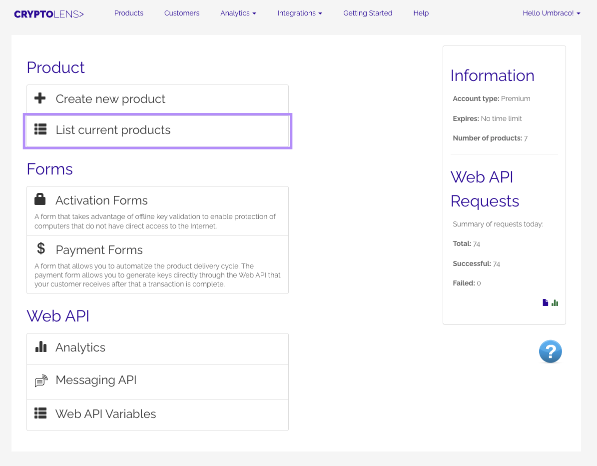 Follow these steps to access your Umbraco licenses through Cryptolens