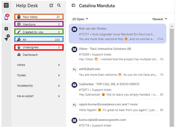 Intercom is our main platform where we handle tickets. Below you can see the main aspects involving Intercom.