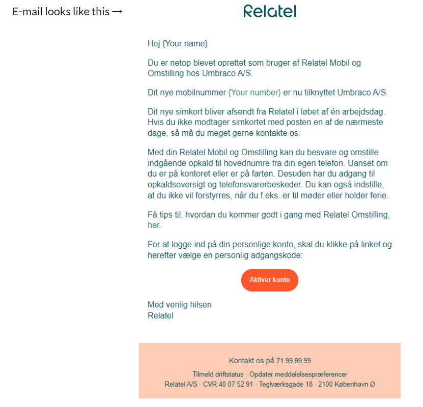 First of all, you will get in contact with Mathias Tøndering which will get your phone and ensure you get a mail enabling you to activate your user and create it.